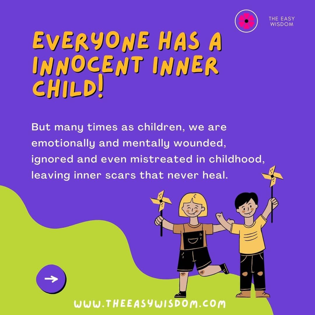 Many times in our childhood, some of our psychological needs were not met. Or as children, we are emotionally and mentally wounded, ignored, and even mistreated in childhood. Such a traumatic past leaves inner scars that never heal, and our inner child gets stuck and doesnāt grow and develop. The emotionally wounded inner child may have an outrageous temperament, throw emotional tantrums, face challenges in forming a bond with friends, and be suspicious of others. The wounded inner child thus becomes part of us that displays the indentations of childhood psychological trauma.